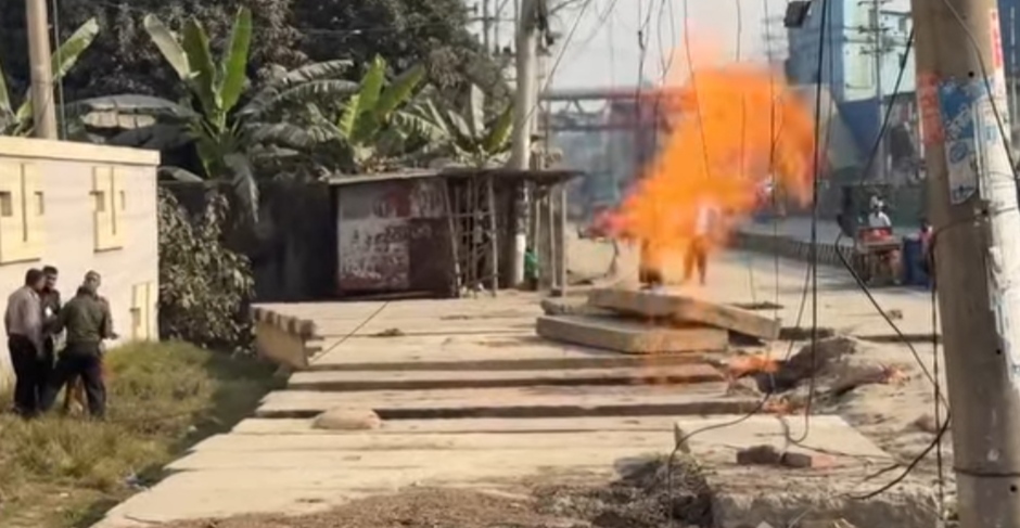 গাজীপুর প্রতিনিধি: গাজীপুরের কালিয়াকৈর উপজেলার সফিপুর পল্লীবিদ্যুৎসহ আশপাশের কয়েকটি এলাকায় তিতাস গ্যাসের ভূগর্ভস্থ পাইপলাইন থেকে দীর্ঘদিন ধরে গ্যাস লিকেজ হয়ে আগুন জ্বলছে। এতে আশপাশের শিল্পকারখানা ও হাজারো শ্রমিকের জীবন চরম ঝুঁকির মধ্যে পড়েছে। দীর্ঘ সময় পেরিয়ে গেলেও গ্যাস সরবরাহ বন্ধ কিংবা স্থায়ী মেরামতের কার্যকর উদ্যোগ নেওয়া হয়নি।
