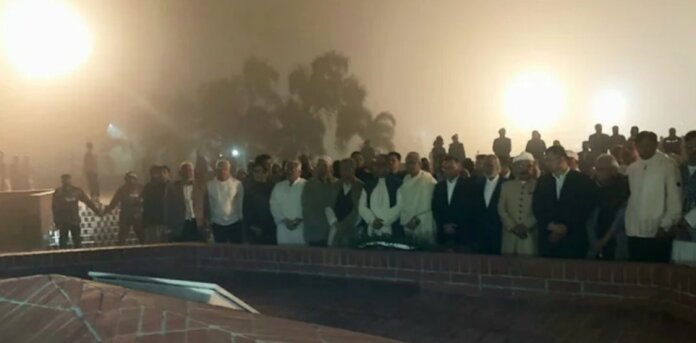 সাভারের জাতীয় স্মৃতিসৌধে ১৯৭১ সালের মহান মুক্তিযুদ্ধের বীর শহীদদের প্রতি গভীর শ্রদ্ধা নিবেদন করেছেন বিএনপির ভারপ্রাপ্ত চেয়ারম্যান তারেক রহমান।