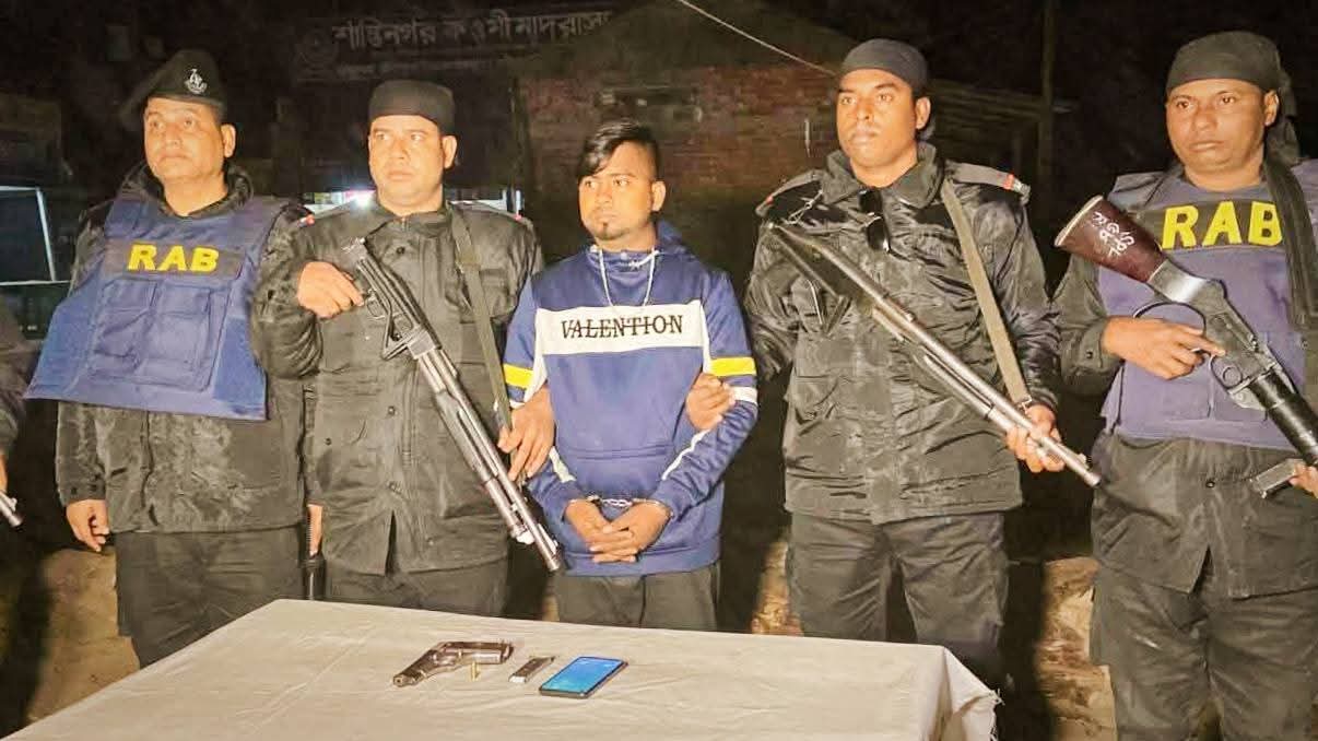 অভিযানে জব্দ করা হয় একটি বিদেশি পিস্তল, এক রাউন্ড গুলি এবং একটি স্মার্ট মোবাইল ফোন।
