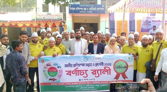 বুধবার (২৬ নভেম্বর)দুপুরে “দেশীয় জাত ও আধুনিক প্রযুক্তি প্রাণীসম্পদে হবে উন্নতি” প্রতিপাদ্যকে কেন্দ্র করে আয়োজিত এই প্রদর্শনীতে তুলে ধরা হয় প্রাণিসম্পদ খাতের আধুনিকায়ন, সম্ভাবনা ও উদ্ভাবন। উদ্বোধনে প্রধান অতিথি ইউএনও মোহাম্মদ খায়রুল ইসলাম