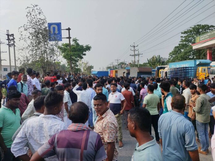 জানা যায়, মহাসড়কের পাশে ট্রাক ও লরিগাড়ি পার্কিংকে কেন্দ্র করে হাইওয়ে পুলিশের সঙ্গে পরিবহন শ্রমিকদের বাকবিতণ্ডা হয়। এ সময় এক পরিবহন শ্রমিককে মারধরের অভিযোগ ওঠে পুলিশের বিরুদ্ধে। এর প্রতিবাদে বিভিন্ন পরিবহন শ্রমিক ঘটনাস্থলে জড়ো হয়ে সড়ক অবরোধ করে বিক্ষোভ শুরু করেন।