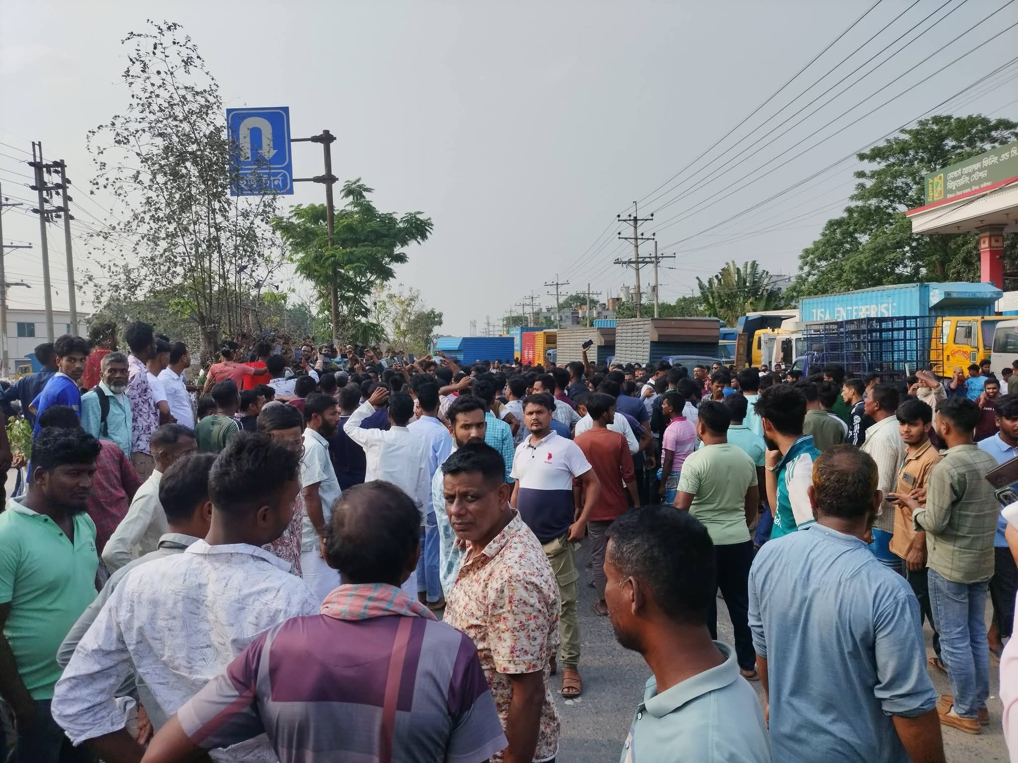 গাজীপুর প্রতিনিধি: গাজীপুরের শ্রীপুর উপজেলার ঢাকা-ময়মনসিংহ মহাসড়কের জৈনা বাজার ইউটার্ন এলাকায় ট্রাক চালকরা সড়ক অবরোধ করে বিক্ষোভ করেছেন। বুধবার (৮ এপ্রিল) দুপুর ২টার দিকে শুরু হওয়া এ বিক্ষোভ বিকেল সাড়ে ৪টা পর্যন্ত চলে, এতে মহাসড়কের দু’পাশে দীর্ঘ যানজটের সৃষ্টি হয়।