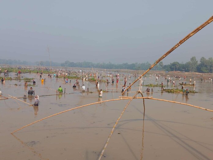 গাজীপুরে উৎসবমুখর পরিবেশ চলছে দিনভর মাছ ধরার উৎসব