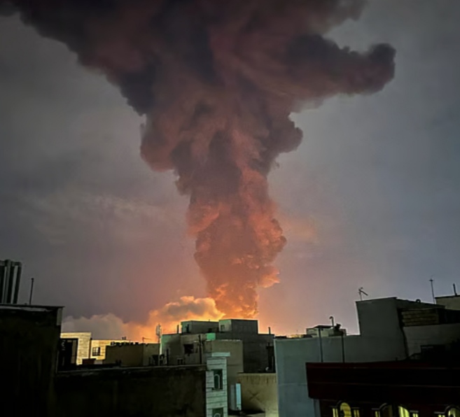 ইসরায়েলি প্রতিরক্ষা বাহিনীর (আইডিএফ) হামলার পর ইরানের রাজধানী তেহরানের একটি তেল শোধনাগারে ভয়াবহ আগুনের ঘটনা ঘটেছে। হামলার পর রাতের আকাশজুড়ে আগুনের কুণ্ডলী ও ধোঁয়ার আভা দেখা যায়।