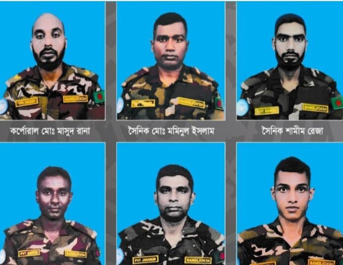 সুদানের আবেই এলাকায় জাতিসংঘ শান্তিরক্ষা মিশনের আওতাধীন একটি ঘাঁটিতে সন্ত্রাসীদের ড্রোন হামলায় বাংলাদেশ সেনাবাহিনীর ছয়জন শান্তিরক্ষী শহীদ হয়েছেন। এ ঘটনায় আরও আটজন বাংলাদেশি শান্তিরক্ষী আহত হয়েছেন।