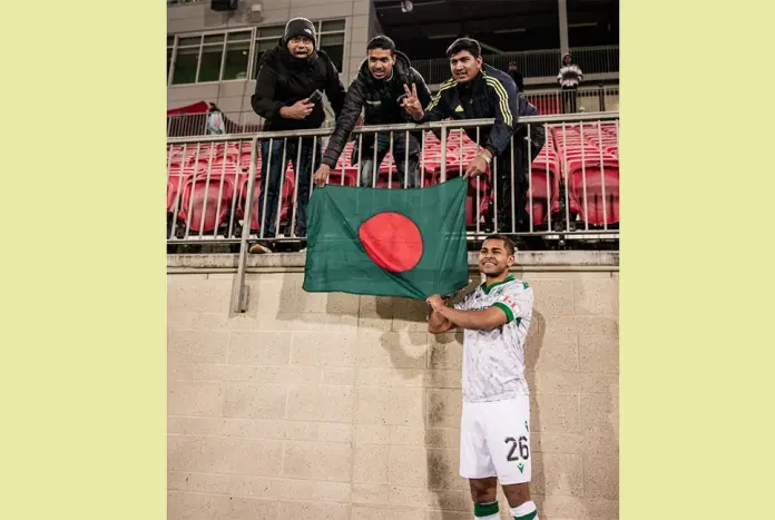 পোস্টটিতে শমিতের একটি ছবিও যুক্ত করা হয়, যেখানে তাকে তিনজন সমর্থকের সঙ্গে বাংলাদেশের পতাকা হাতে দেখা যায়।